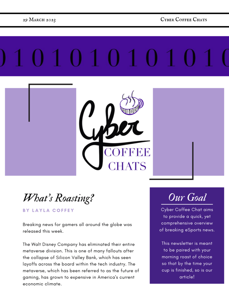 Cyber Coffee Chat- 29 March 2023 Posted by5udokuMarch 29, 2023Posted ineSportTags:gamedevelopment, laylacoffey, studentgeneratedcontent Share this: Click to share on X (Opens in new window) X Click to share on Facebook (Opens in new window) Facebook Like Loading... Related